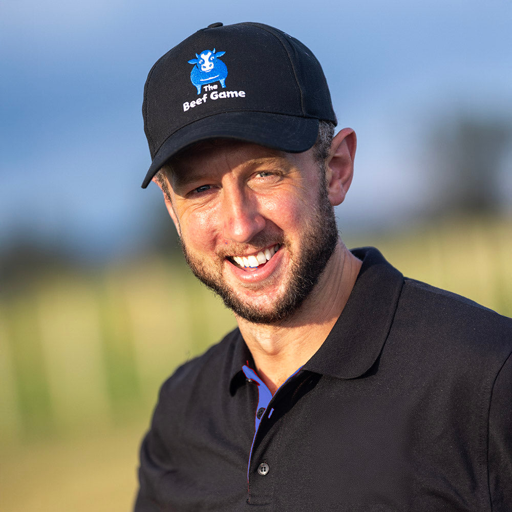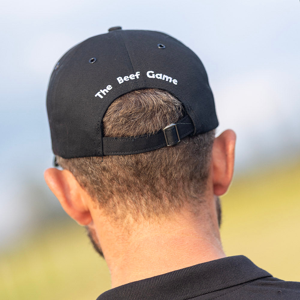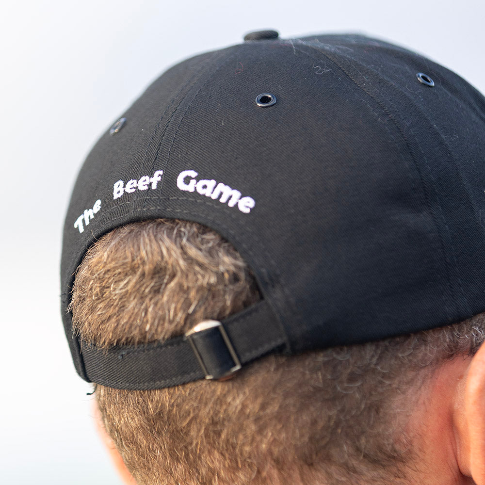 Embroidered logo on front and 'The Beef Game' text embroidered on back.